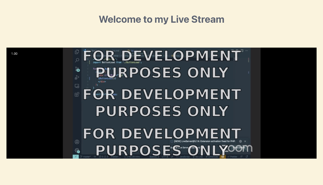 Your React App should now display your livestream. I tried live sharing VS Code in my Zoom meeting, and here’s the result in the React App: