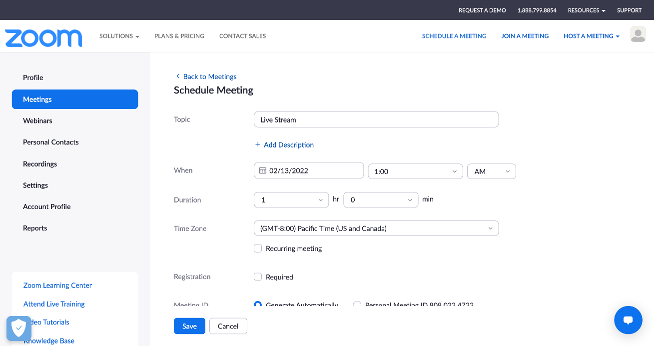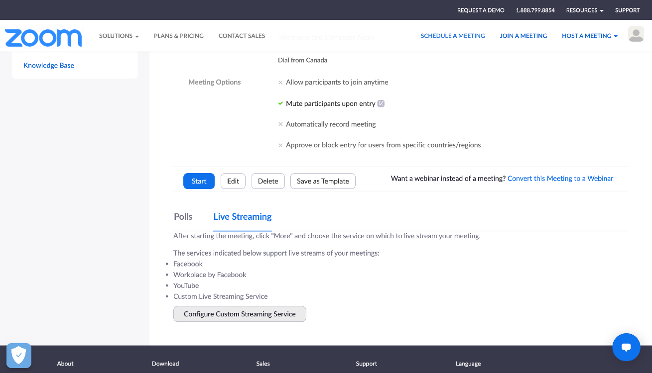 After you create your meeting, go to your meeting information and scroll down to select Configure Custom Streaming Service.