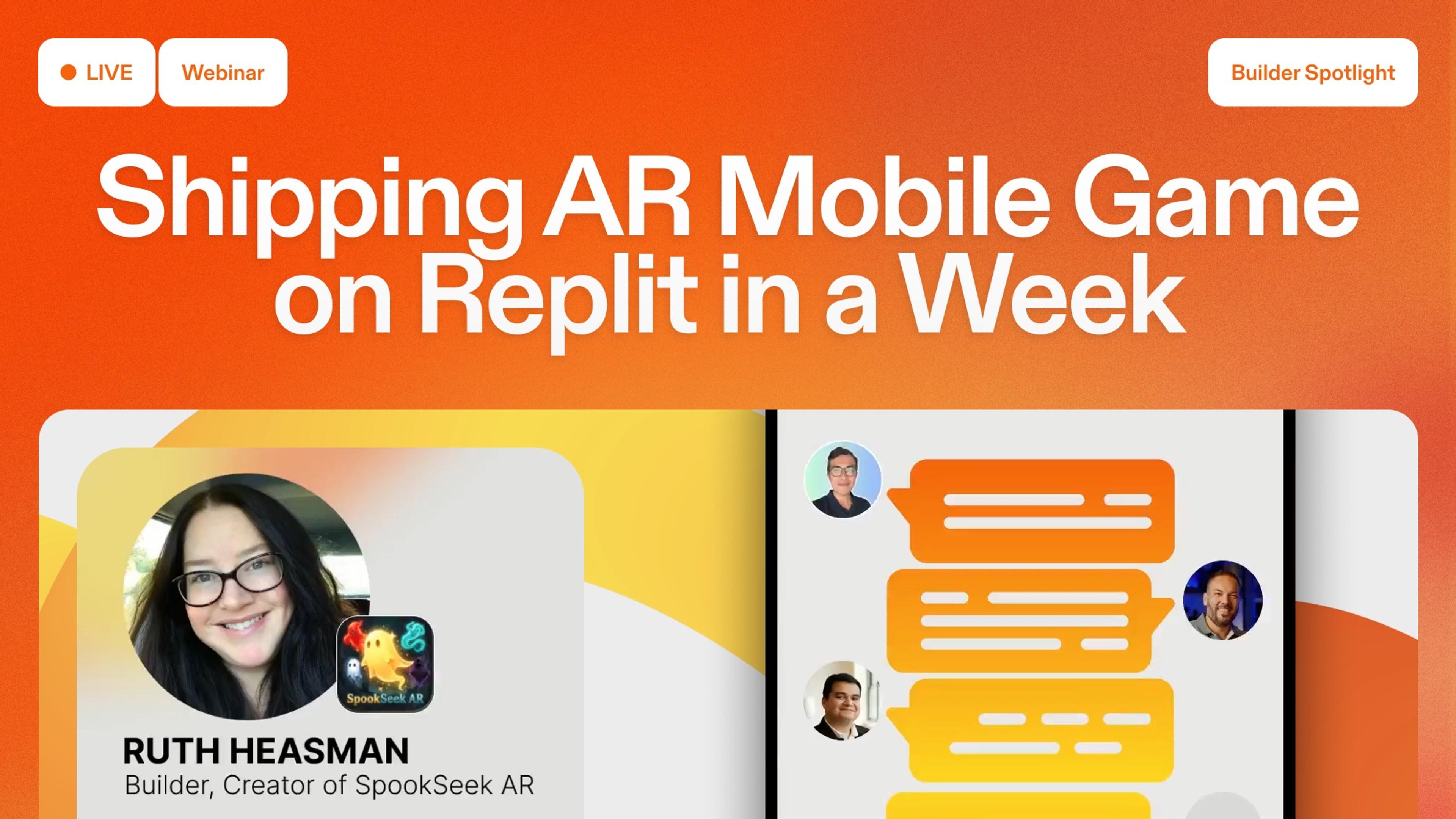 Spookseek AR, the ghost hunting game Heasman built for Replit’s mobile Buildathon, is the latest success story shared on our Builder Spotlight webinar.