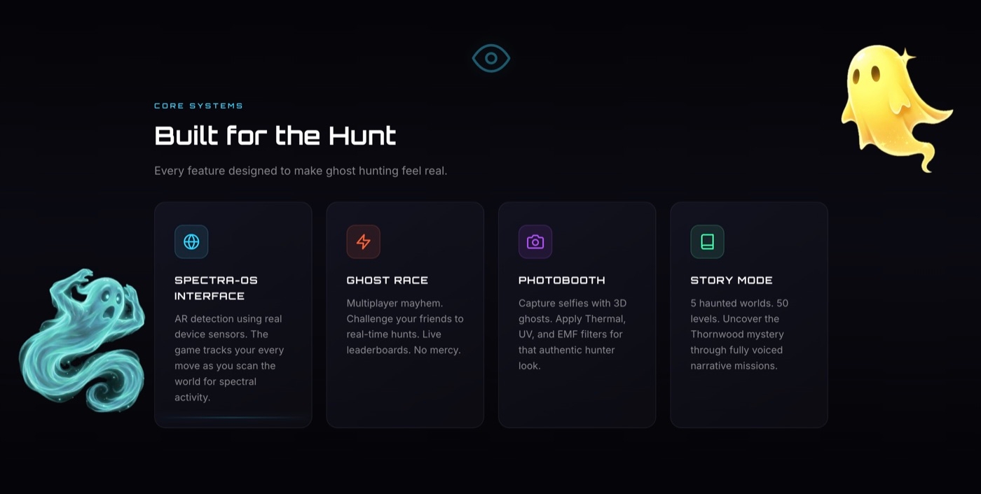 The result is Spookseek AR, an augmented reality ghost hunting game. Players move around their real space with the phone, scanning the room and tracking ghosts that float around them. Captured ghosts appear in a bestiary as holographic style cards, complete with playful visuals that feel more inviting than frightening.