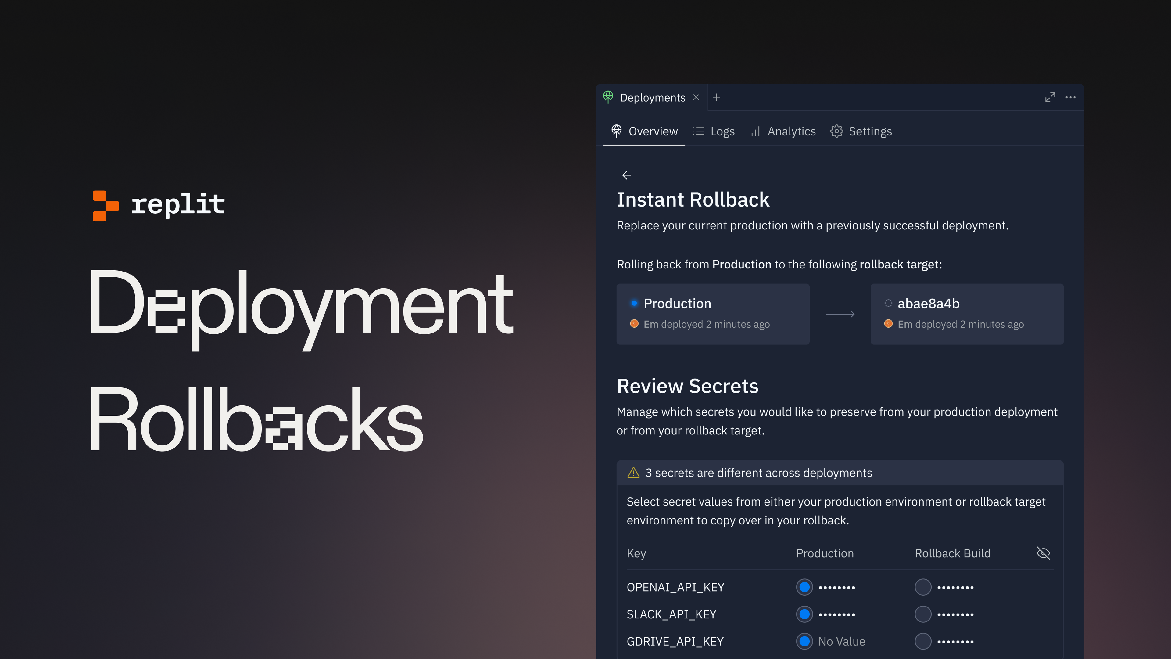 Mon, Aug 26, 2024Introducing Deployment Rollbacks