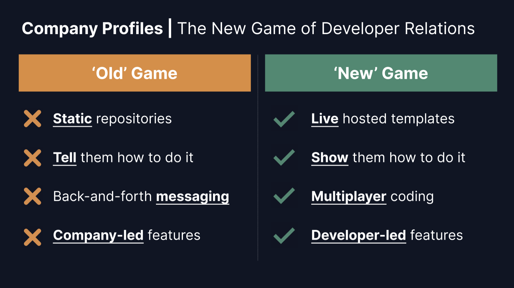 To engage these developers, the old way - things like on-site hackathons in Sunnyvale where companies offer pizza - won't work. Companies looking to find awesome new developers need to engage users where they are passionate. Replit is how to do that. Here's more on how.