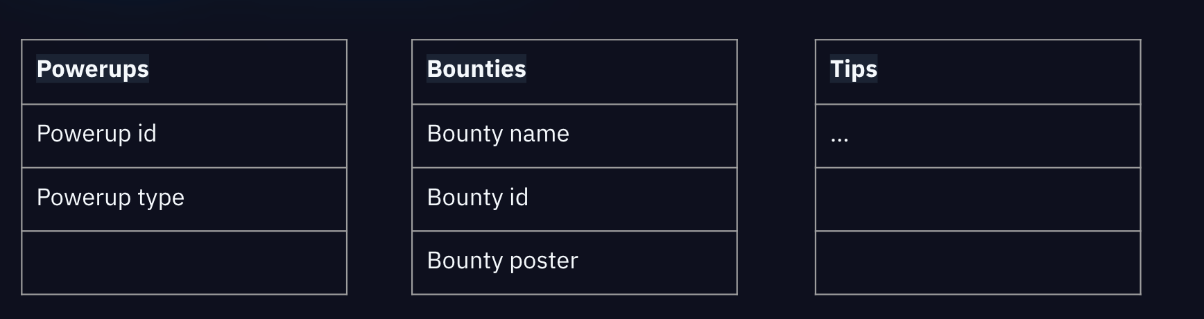 Outside of these spanner tables, we use postgres tables to hold more contextual information about the transactions itself. For example, bouties, powerups, tips all have their own tables that hold more details.