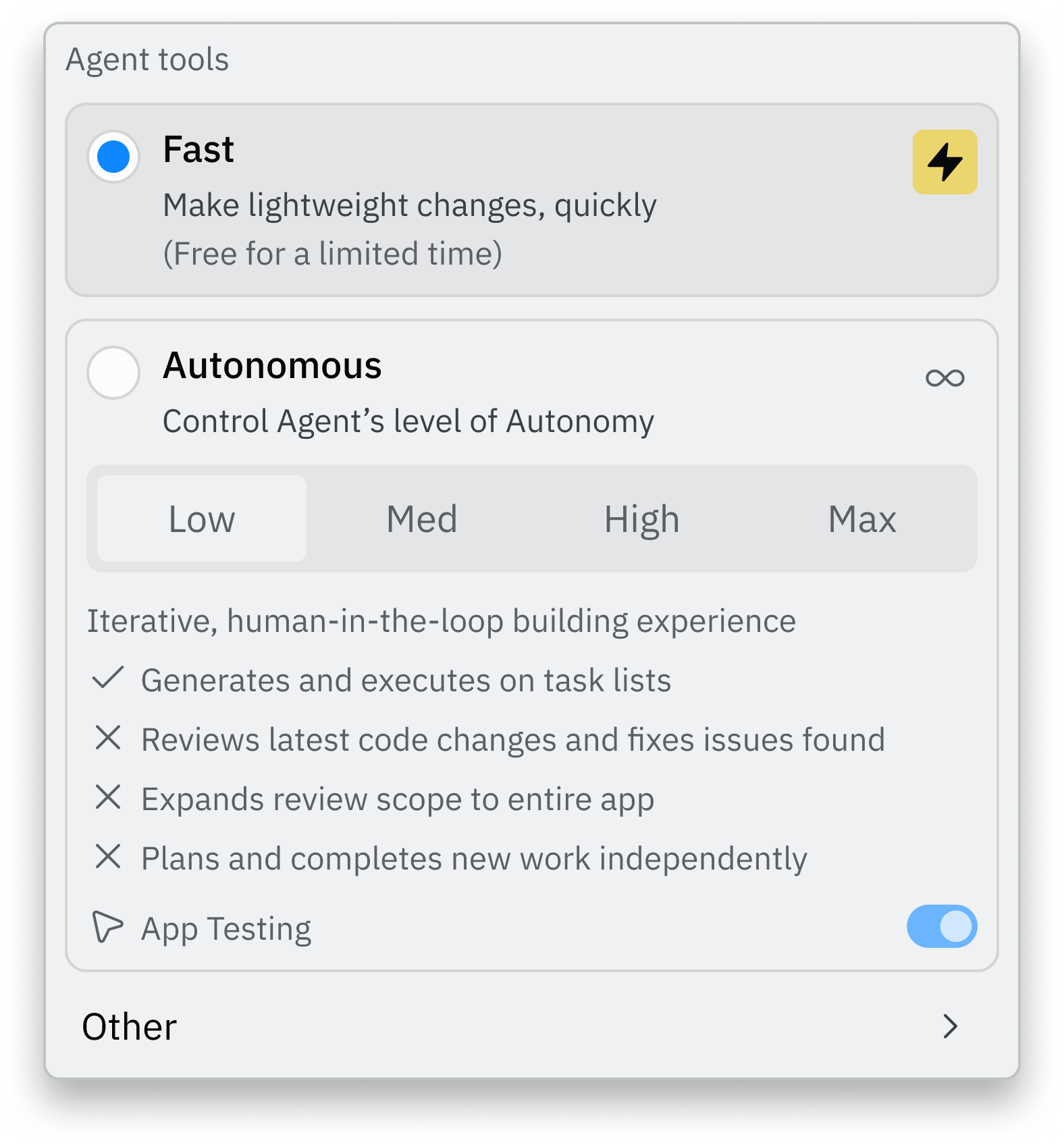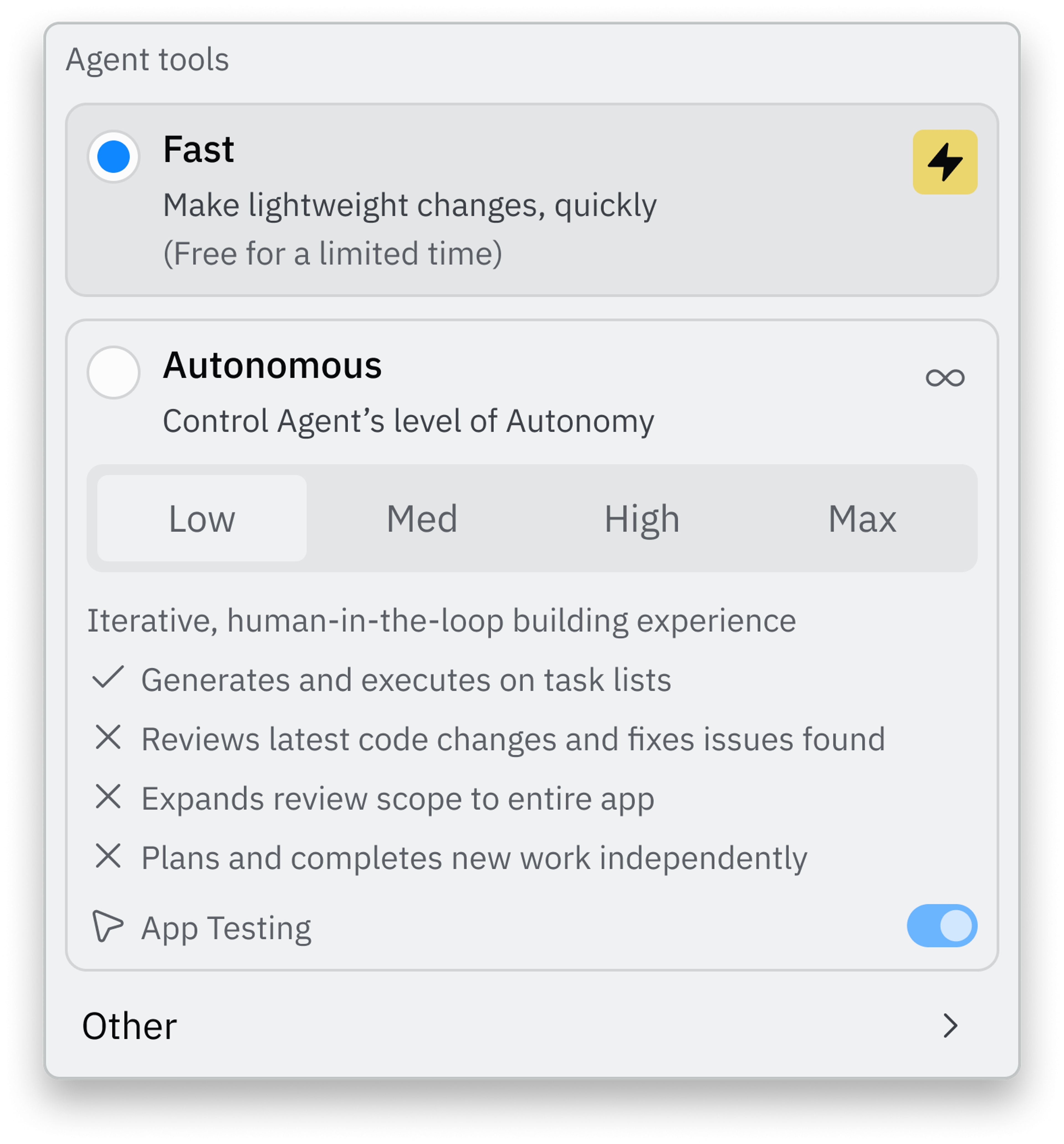 As Replit Agent has become more autonomous, users told us they loved the power, but missed the simplicity of small, targeted adjustments. Fast Mode bridges that gap.