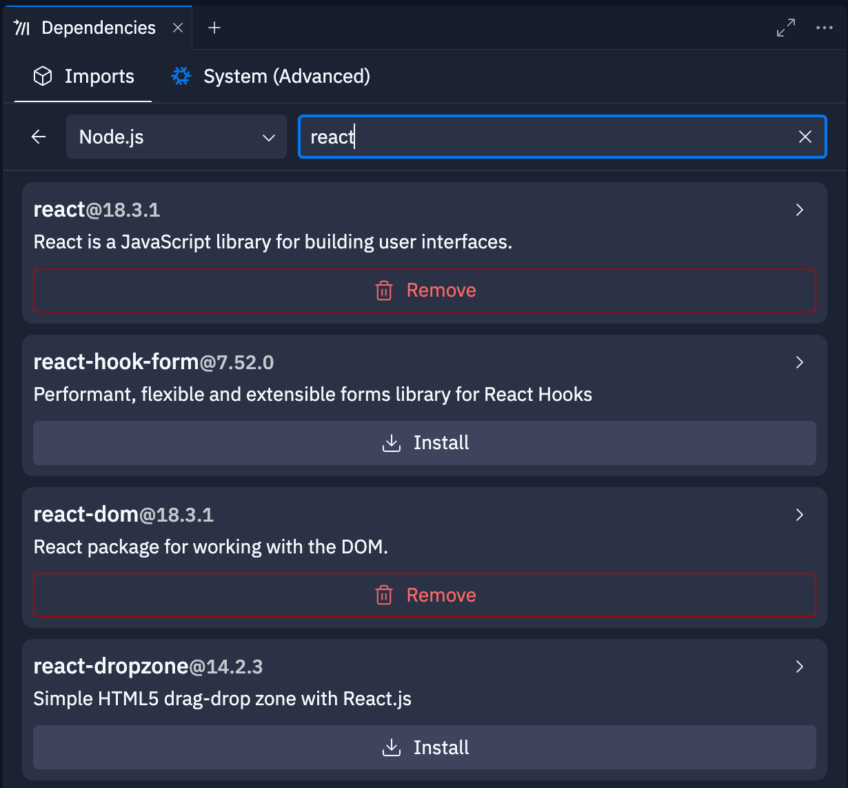 Building on our previous improvements to the Packages tool, we’ve streamlined the experience to show you the current state of your project at a glance. You can manage imported packages for each language your Repl supports.