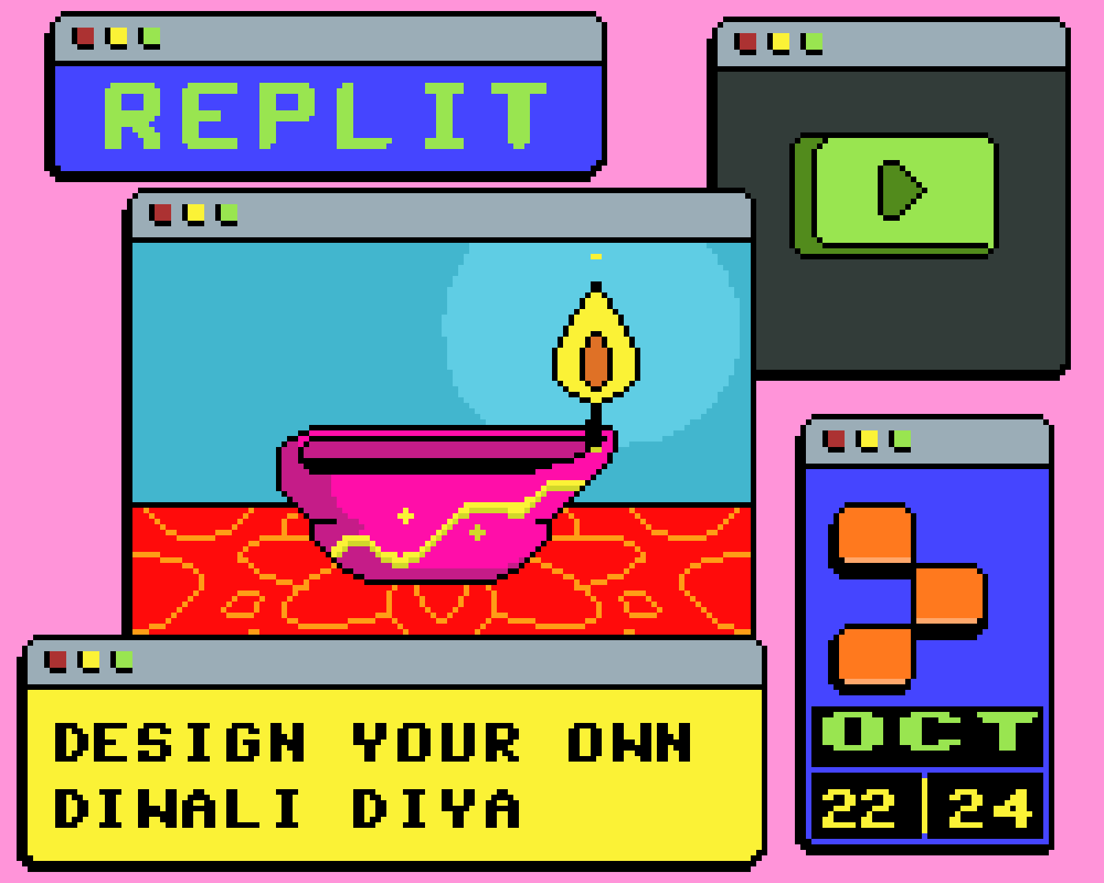 This Diwali, code and light up a beautiful diya for Diwali. You can use Javascript or HTML + CSS to create and animate this! To participate just publish a Repl with the hashtag #ReplitDiwaliDiya before Oct 24th, and you will be automatically entered. The top 5 submissions will get a free hacker plan and be featured on our newly launched community hub!