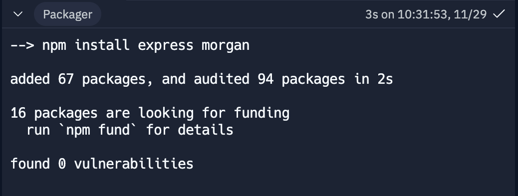 Packager installations were also displayed in the Console, which could lead to users either missing possible issues (since they were cleaned before the code was executed) or even intertwined code and packager output text, which led to even more confusion.