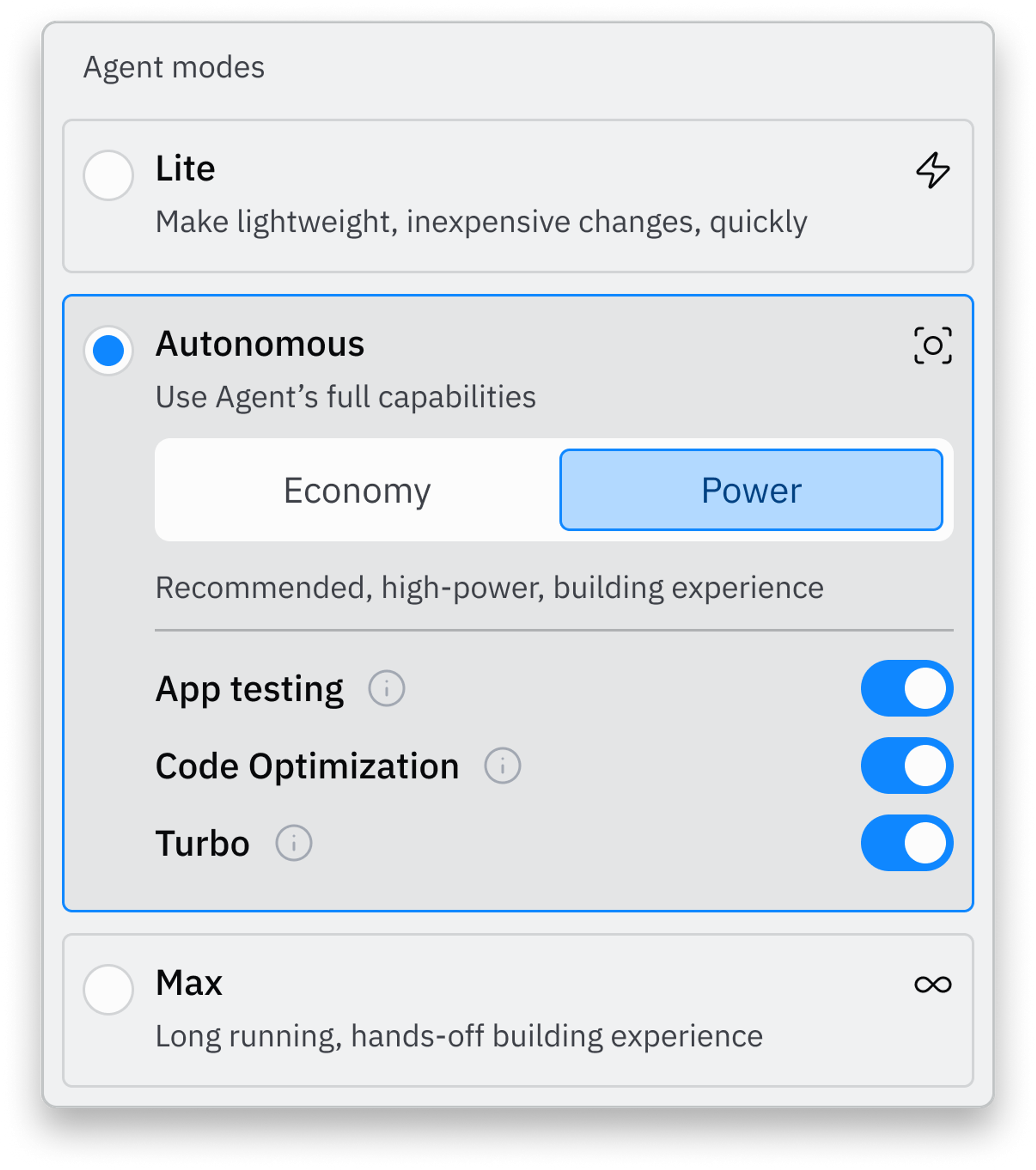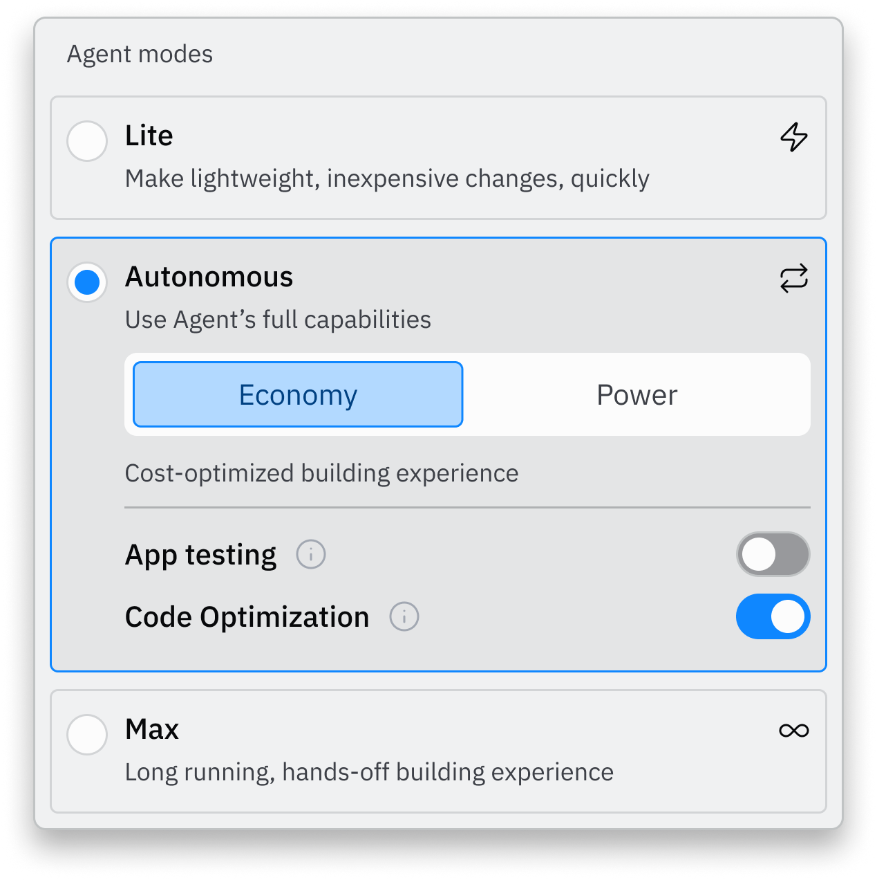 We're introducing new Agent modes to optimize for cost or capability based on your needs.