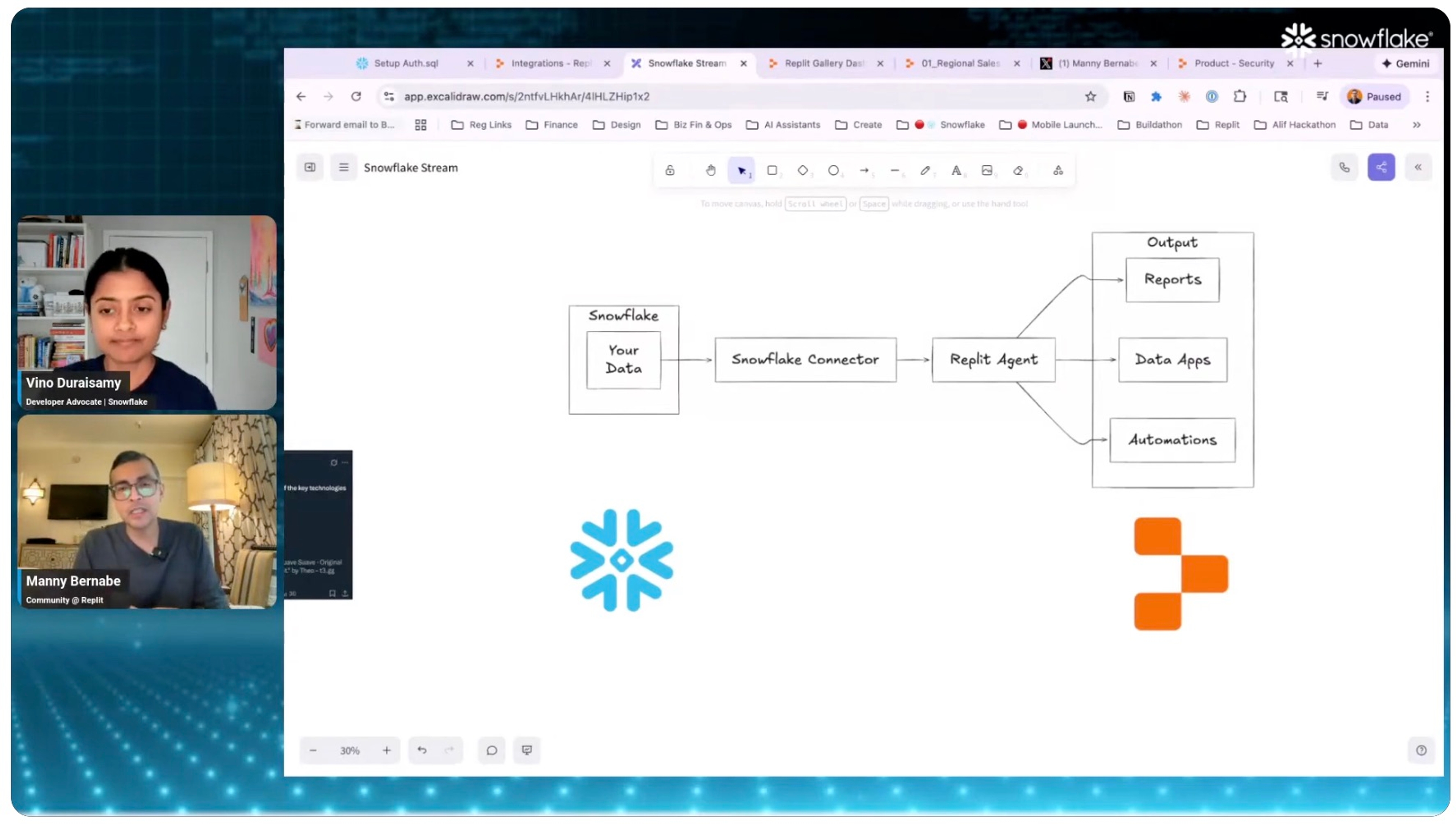- Snowflake developer advocate Vino Duraisamy joins Replit Community Manager Manny Bernabe for another informative live webinar.