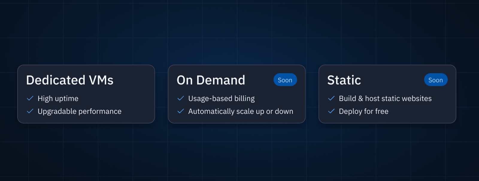 Today, Replit Deployments are shared, dedicated virtual machines (VMs). We’re launching on-demand and static hosting options soon. All of this infrastructure is powered by Google Cloud Platform, and its reliability and security. The machines hosting the deployments are isolated VMs. The infrastructure is scalable to millions of users (it's what Replit uses!), and it is language agnostic.
