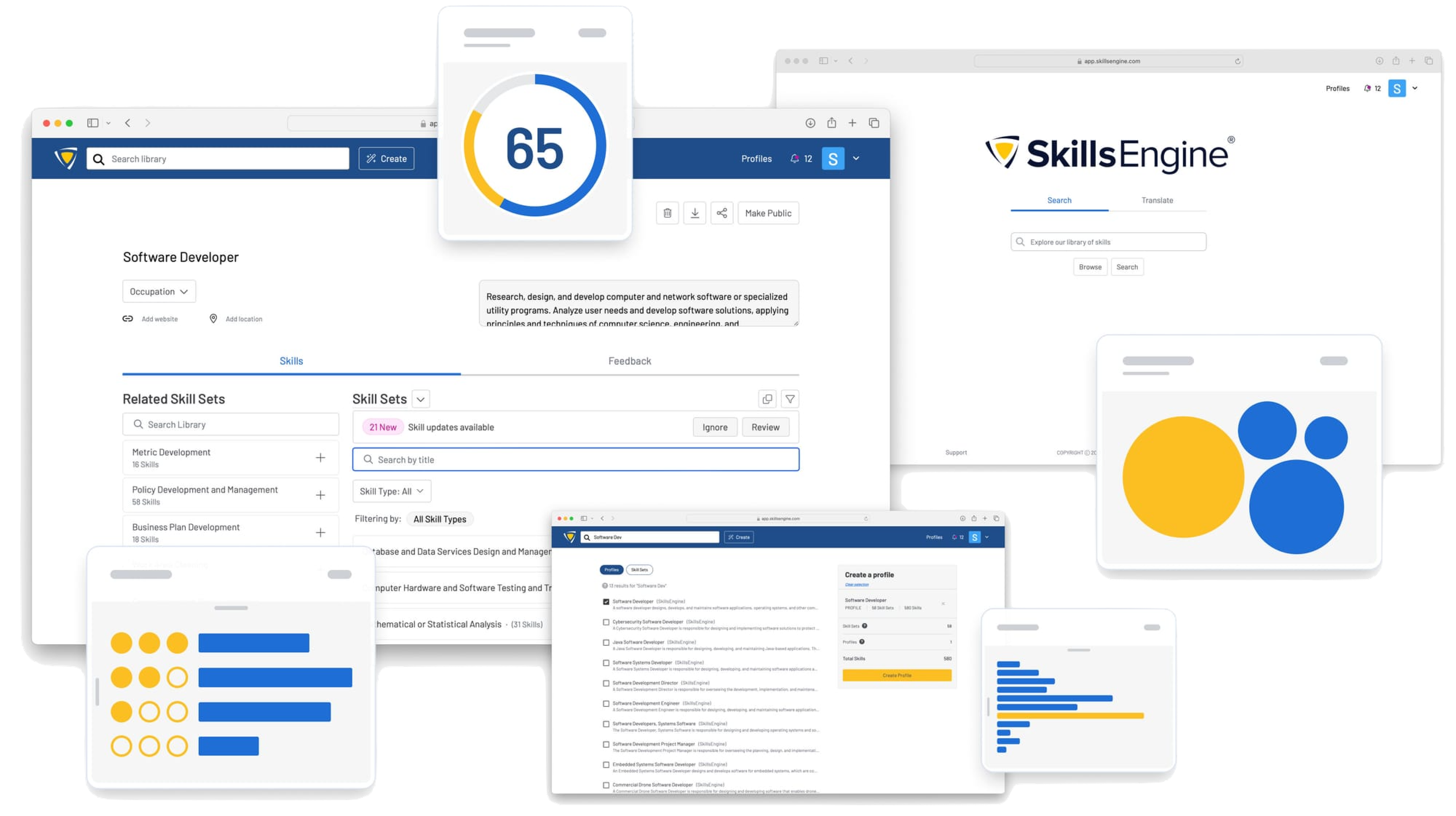 SkillsEngine develops data services and tools for employers, educators, and workforce interests. Employers use SkillsEngine data to confidently assess their workforce capabilities and hiring needs. Educators use features like skill-based job profiles to plan curricula that meet current job market needs.