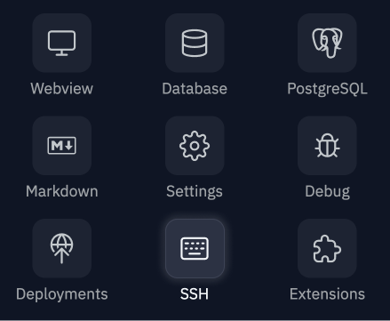 If you're subscribed to a paid plan, you'll notice a new "SSH" entry in the Tools section of the Workspace. You can add your SSH keys and start working with your Repl remotely!