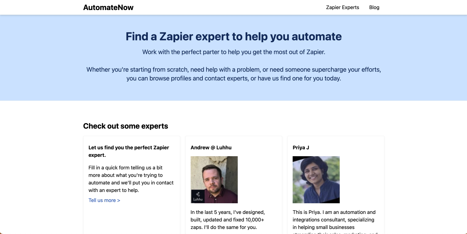 Automation “experts” and agencies have become so popular that finding real experts has become difficult. AutomateNow is a website that lists and sources the best Zapier and automation experts worldwide. Whether you need an entire business process automated or your Zaps consolidated, this expert network is here to help.